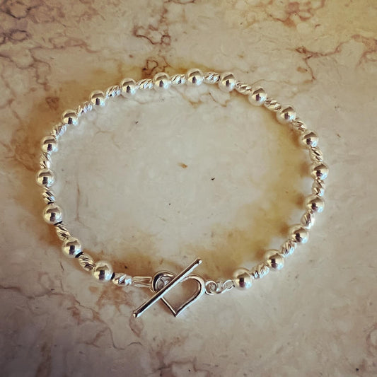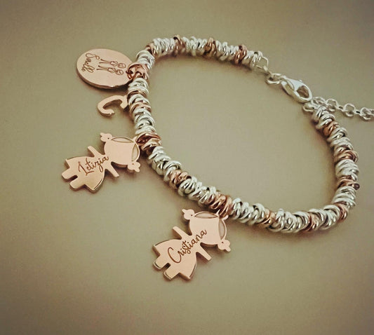 Bracciale sferette e pepite diamantate con chiusura a cuore