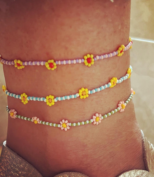 Cavigliere a fiori e cristallini colorati