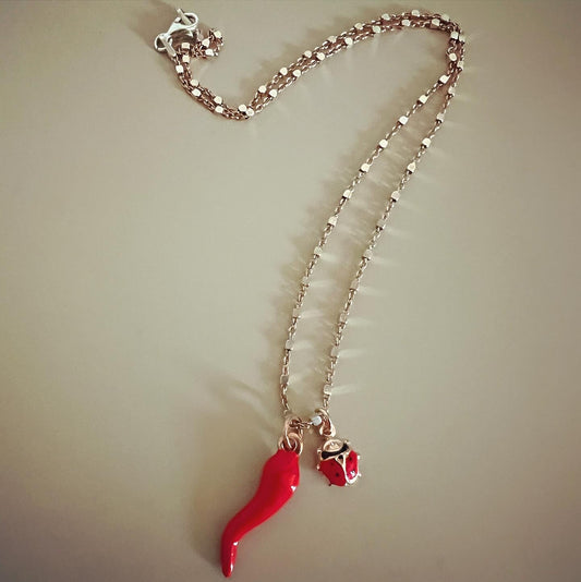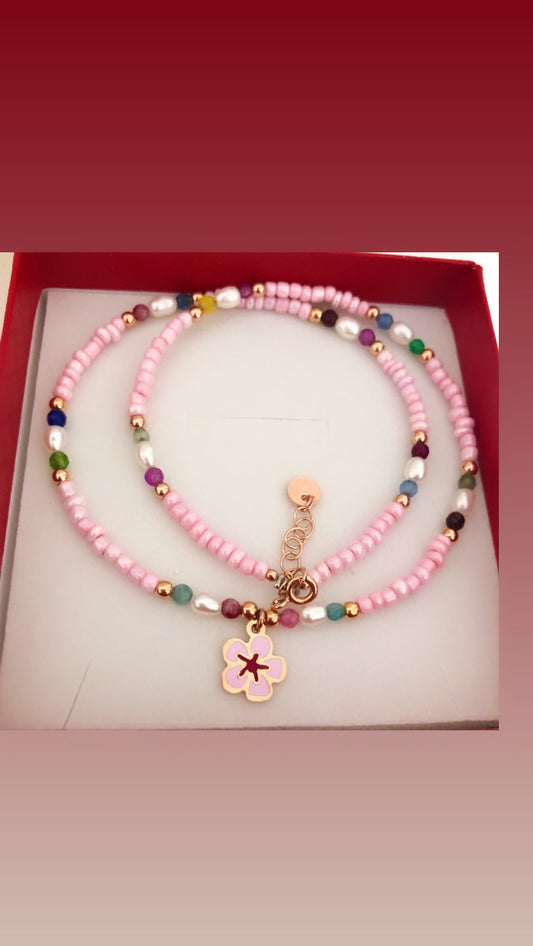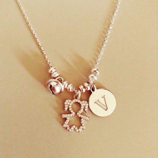 Collana in argento bianco e rosato con pepite grosse e 3 iniziali