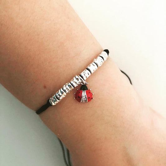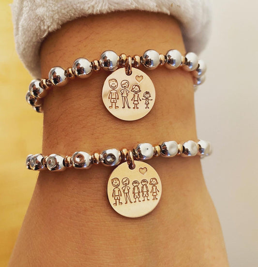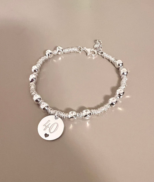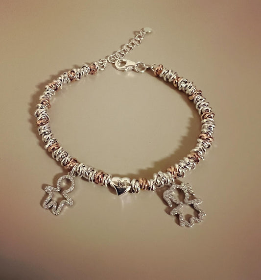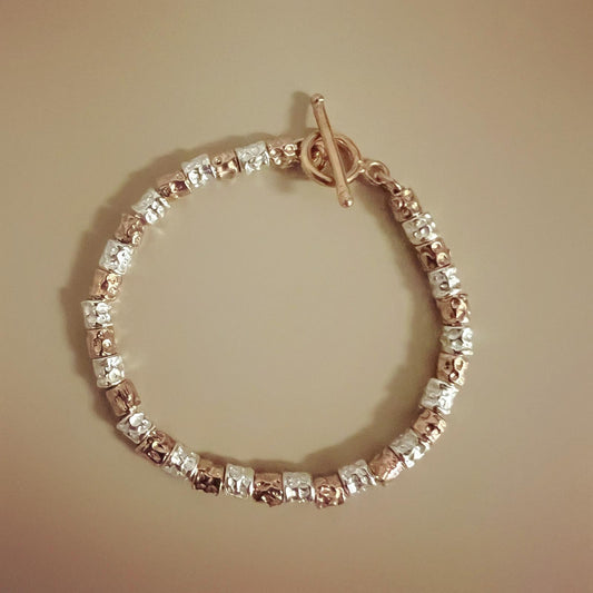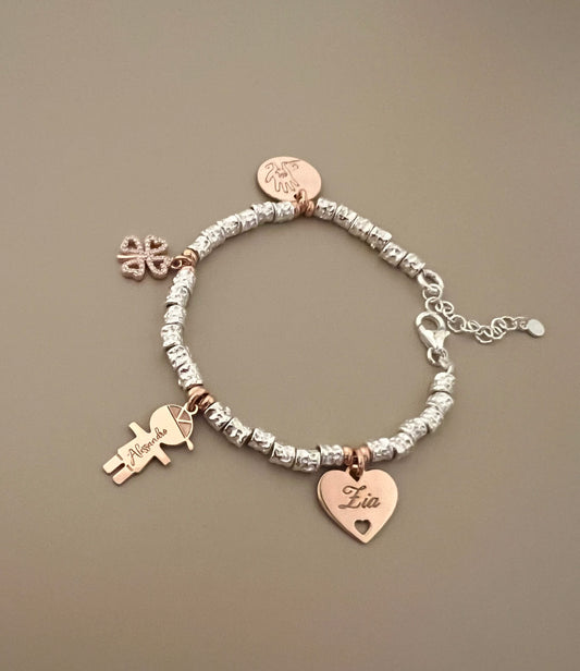 Bracciale con cubetti martellati e rondelle e ciondoli personalizzati