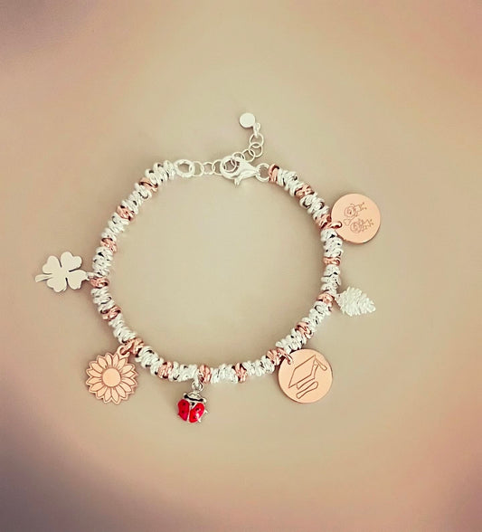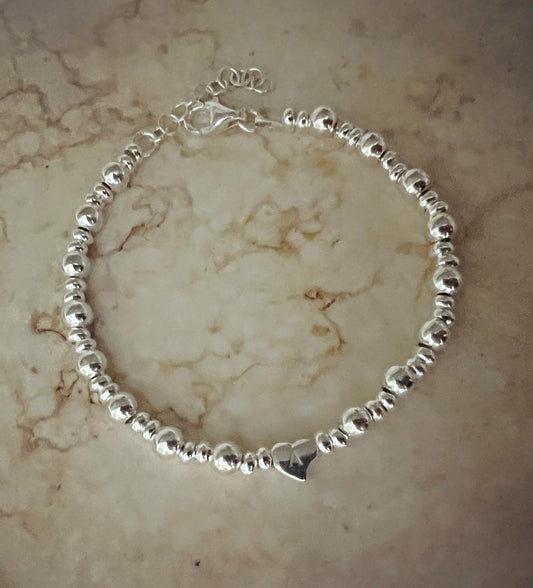 Bracciale in argento con rondelle sfere e centrale cuore iniziale