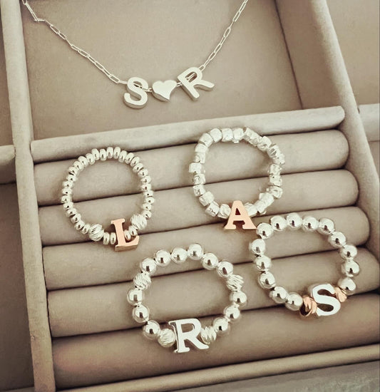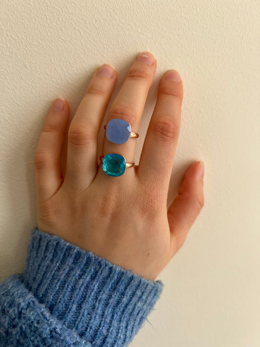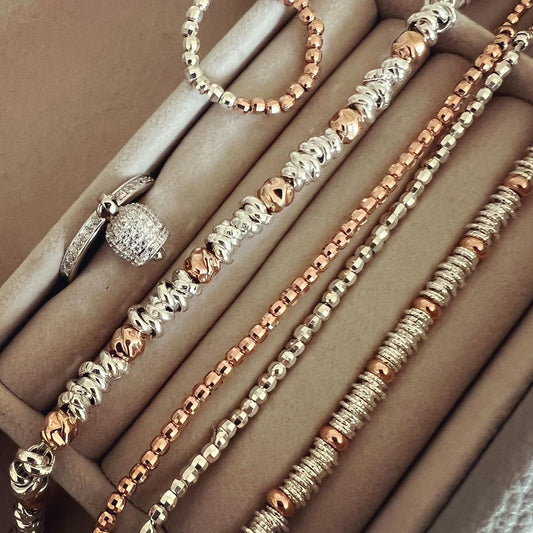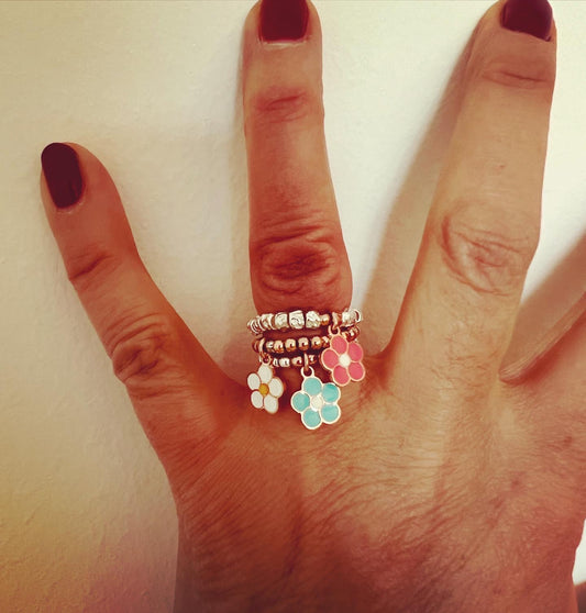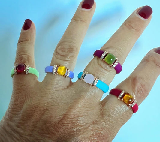 Anelli in caucciù colorato con inserti di pietra e argento rosato