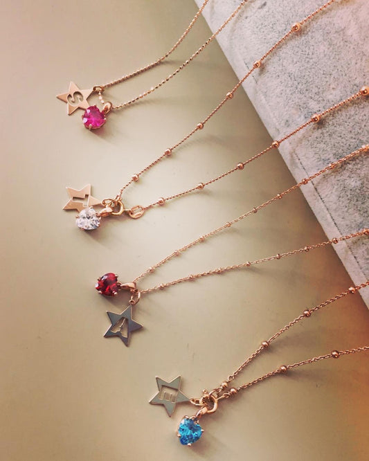Girocollo con cuore zircone e stellina iniziale