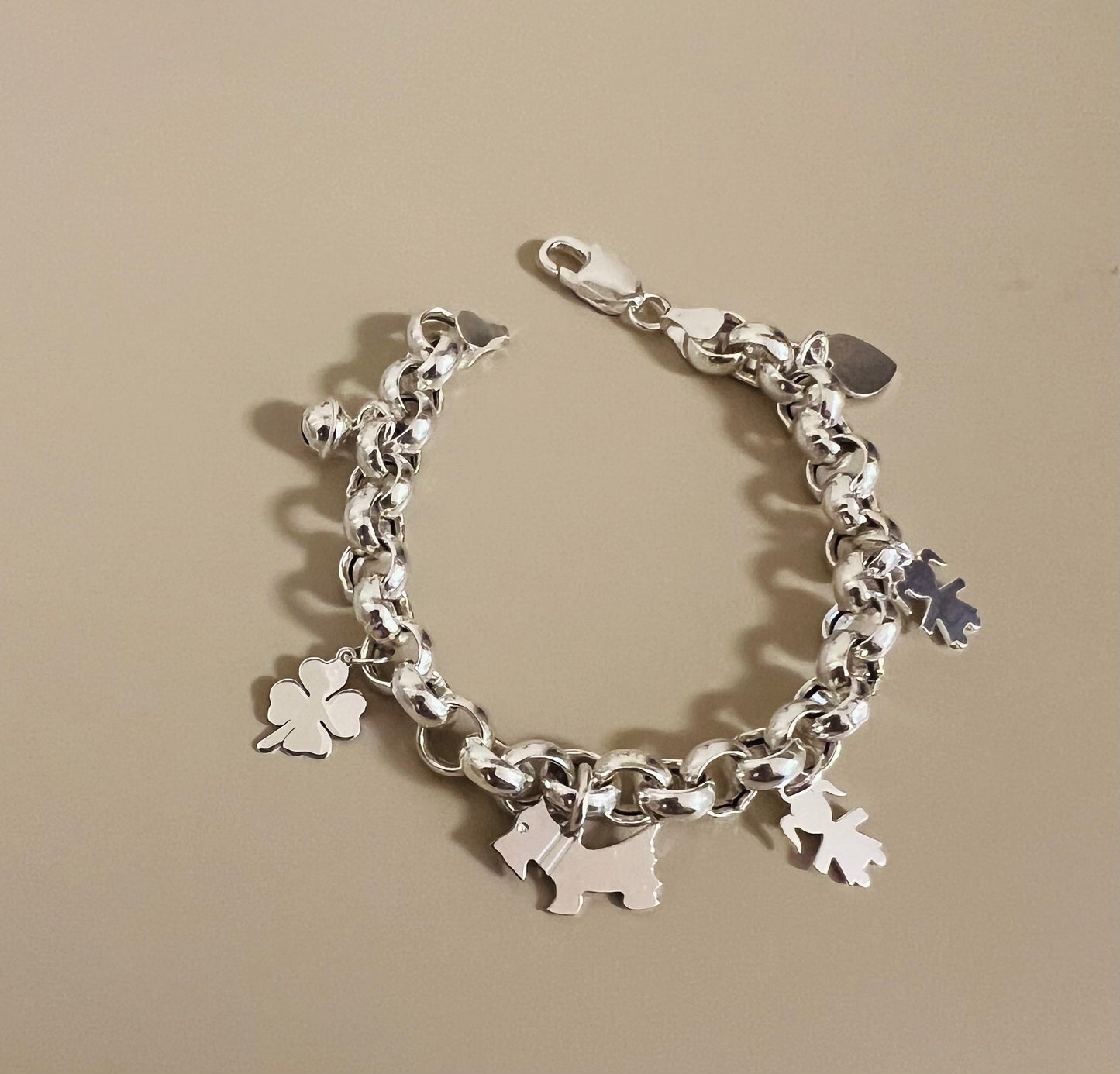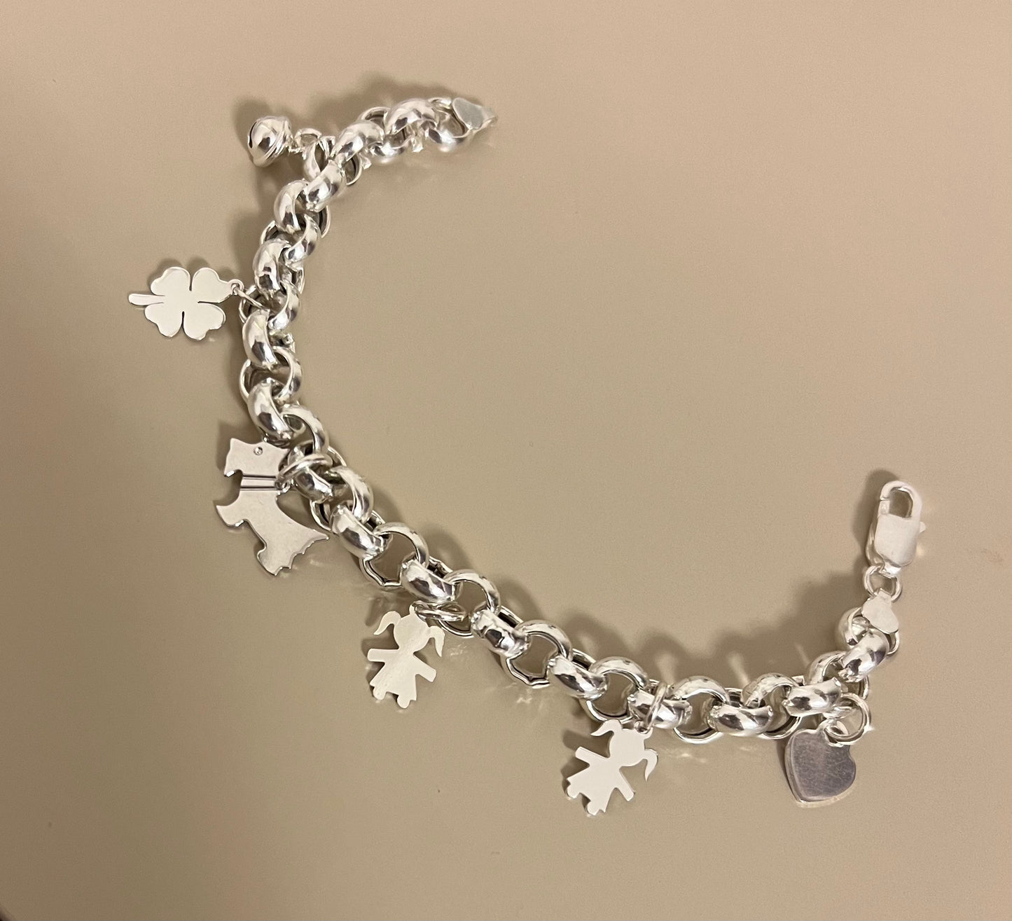 Bracciale catena rollò grossa e 5 ciondoli