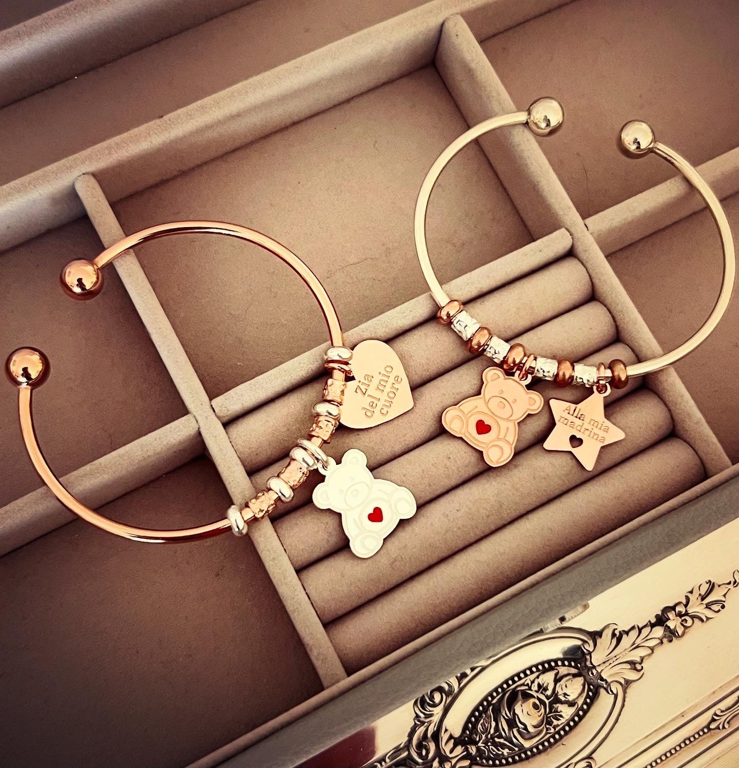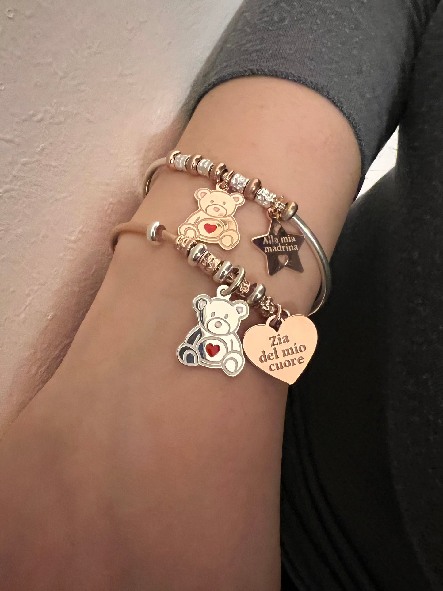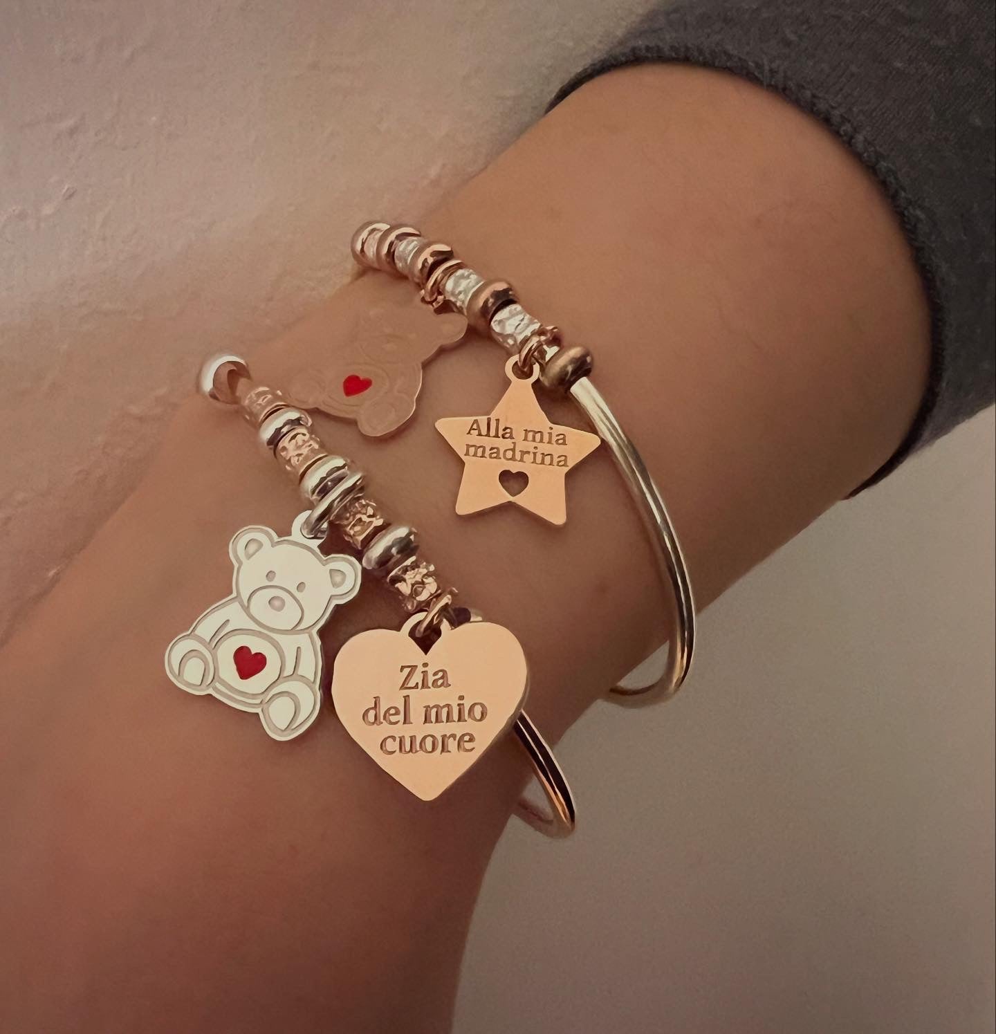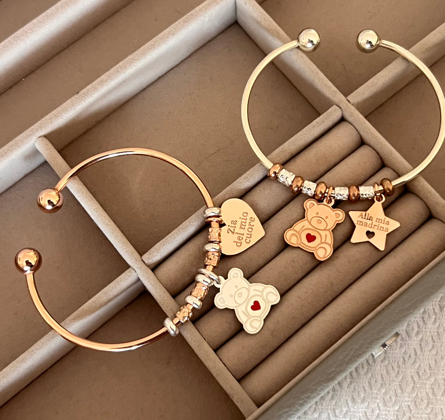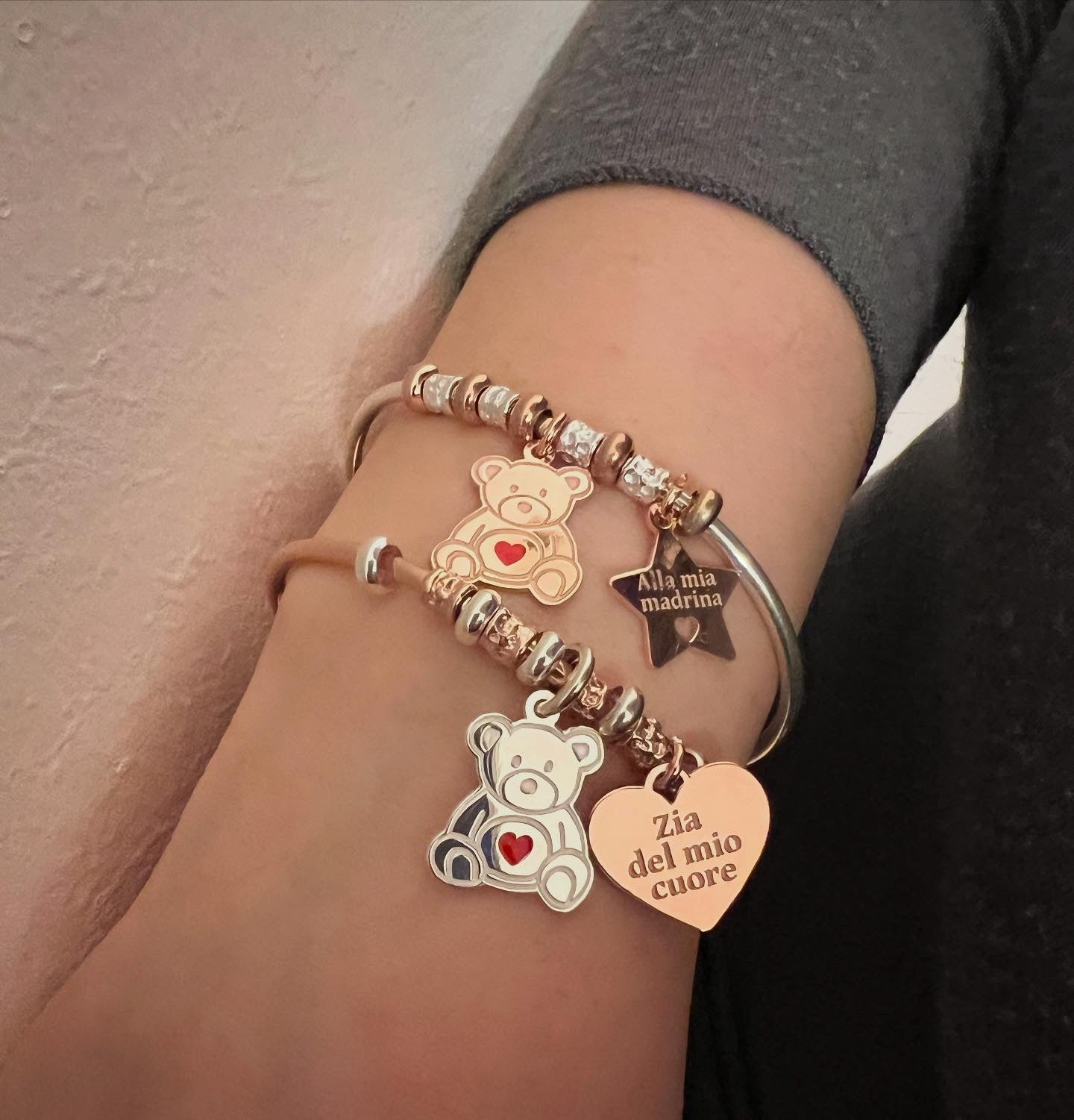 Bracciali rigidi con orsetto e cuore o stella personalizzati